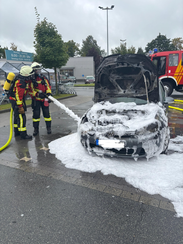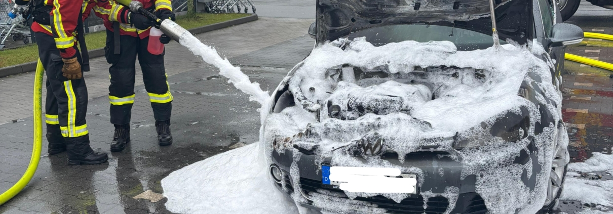 Bei Eintreffen der ersten Kräfte stand das Fahrzeug im Bereich des Motorraums bereits in Vollbrand. Aufgrund eines schnellen und gezielten Löschangriffs konnte ein Übergreifen auf weitere Fahrzeuge und eine weitere Brandausbreitung verhindert werden.