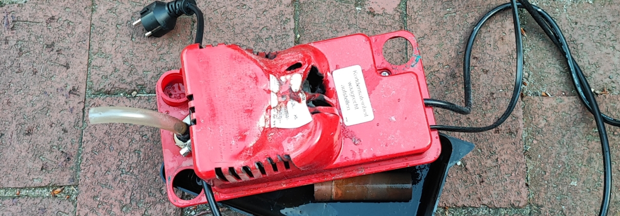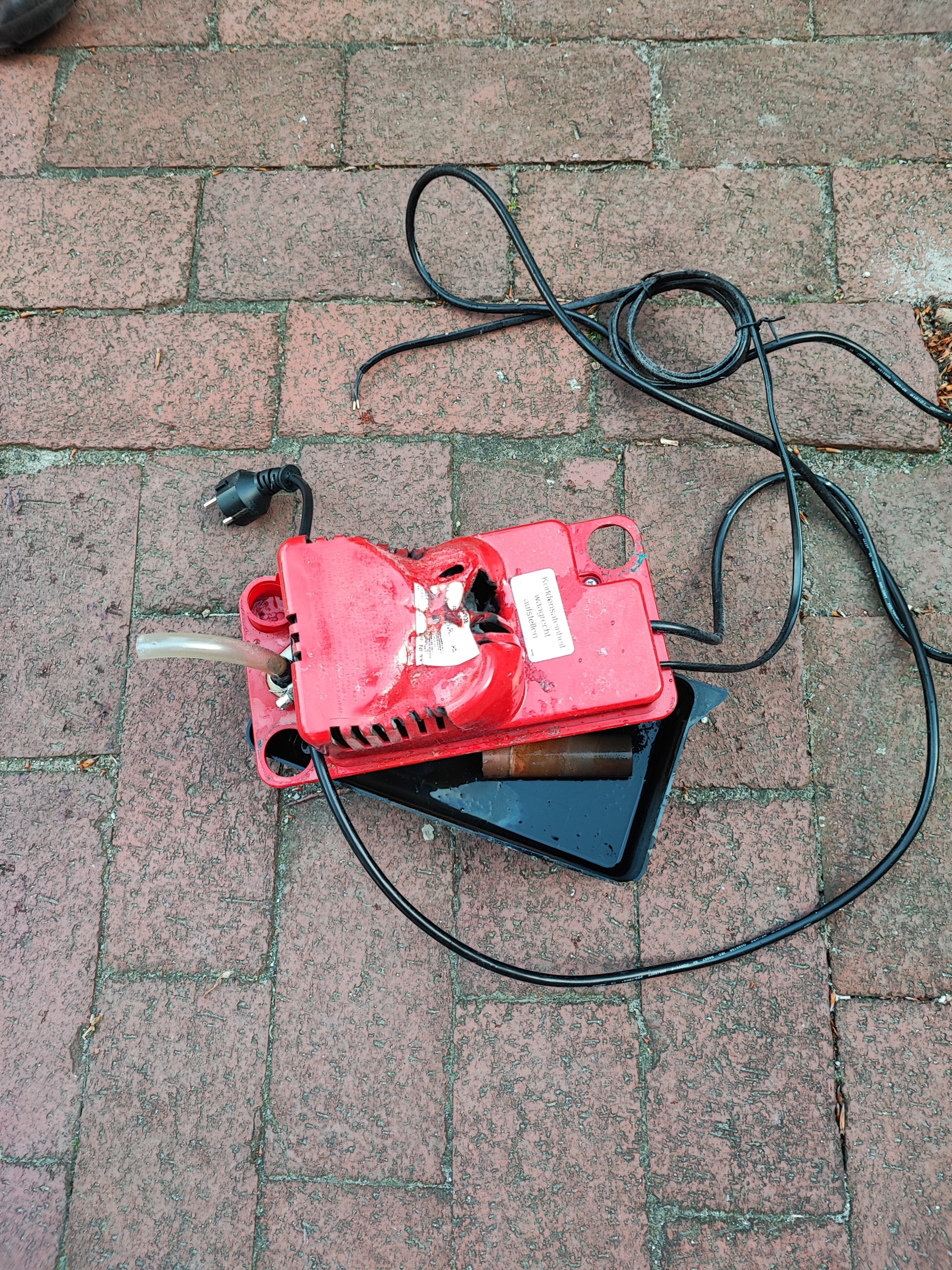 Umgehend wurde weiter erkundet und ein Trupp unter Atemschutz eingesetzt. Eine elektrische Hebepumpe hinter einer Waschmaschine hatte geschmort und war letztlich die Ursache und der Auslösegrund. Diese wurde demontiert und ins Freie gebracht.