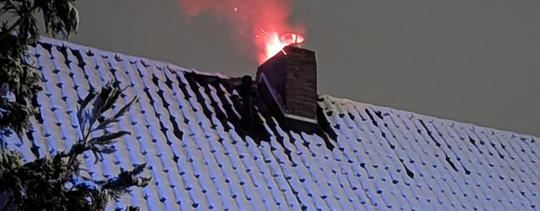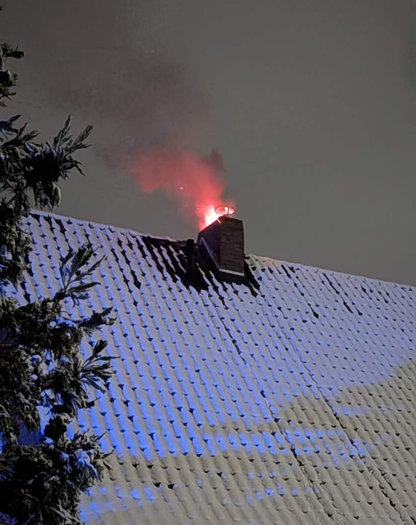 Bei Eintreffen der Polizei konnte die Lage schnell bestätigt werden. Flammen waren deutlich sichtbar und schlugen aus dem Schornstein. Als wir an der Einsatzstelle eintrafen gingen der Gruppenführer HLF und der Einsatzleiter umgehend zur Erkundung vor.