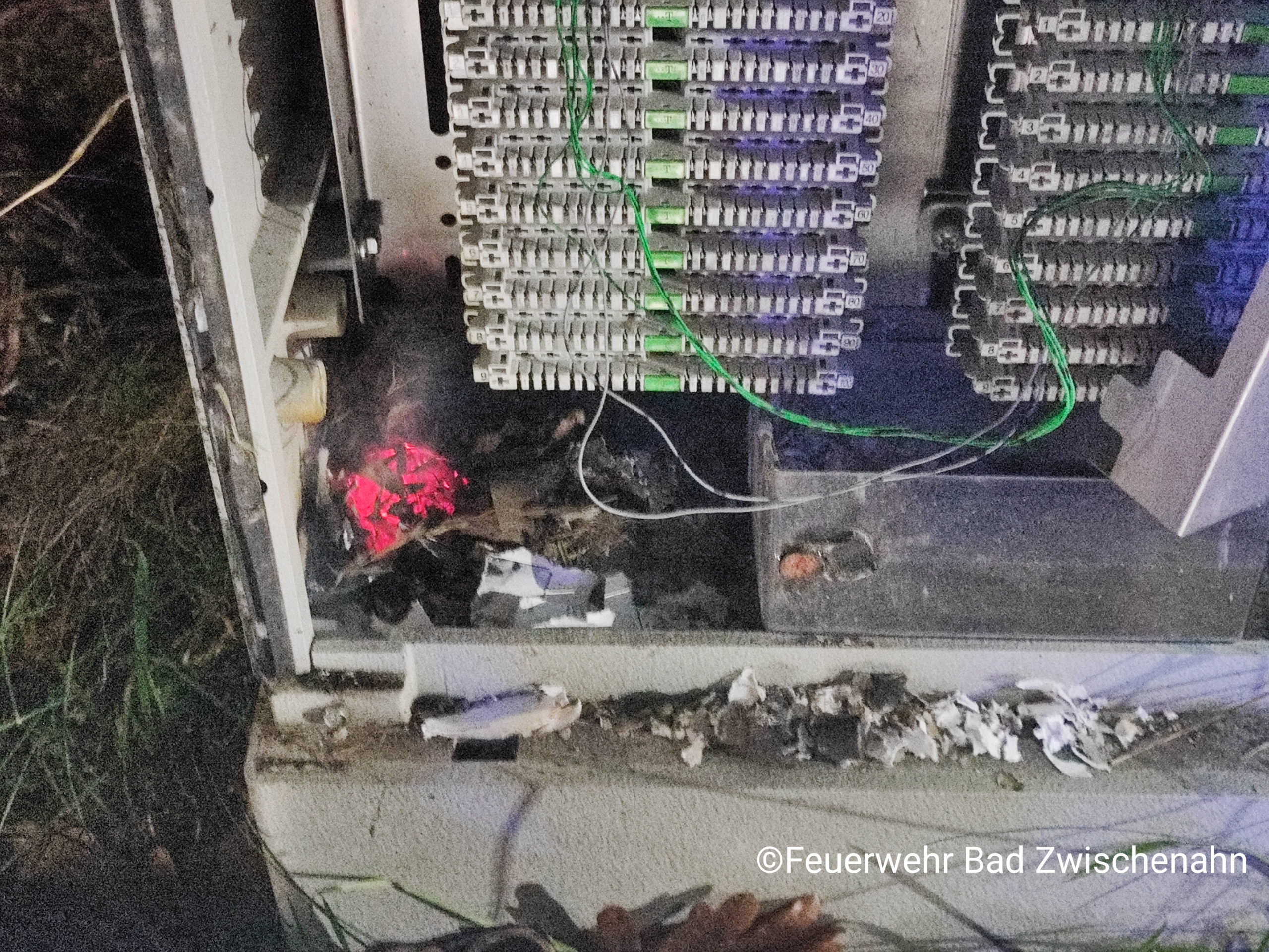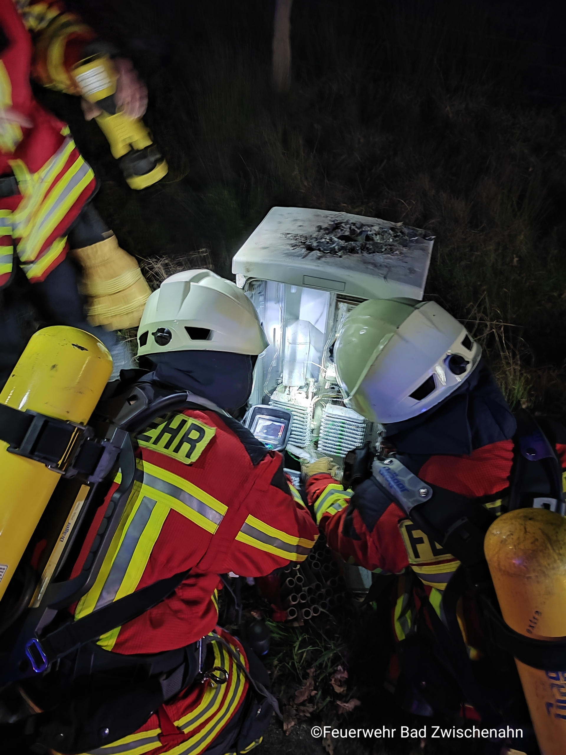 Gerade wieder eingerückt und umgezogen, erreichte unsere Silvesterbereitschaft im Feuerwehrhaus über Funk der nächste Einsatz. Diesmal ging es in den eigenen Ortsteil zu einem gemeldeten Stromkastenbrand. Vor Ort angekommen bestätigte sich die Lage insoweit, dass Rauch aus dem Kasten aufstieg, es sich aber entgegen der ersten Meldung nicht um einen Stromkasten, sondern um einen Telefon-Verteilerkasten handelte. Vermutlich aufgrund einer Feuerwerksbatterie geriet dieser in Brand.