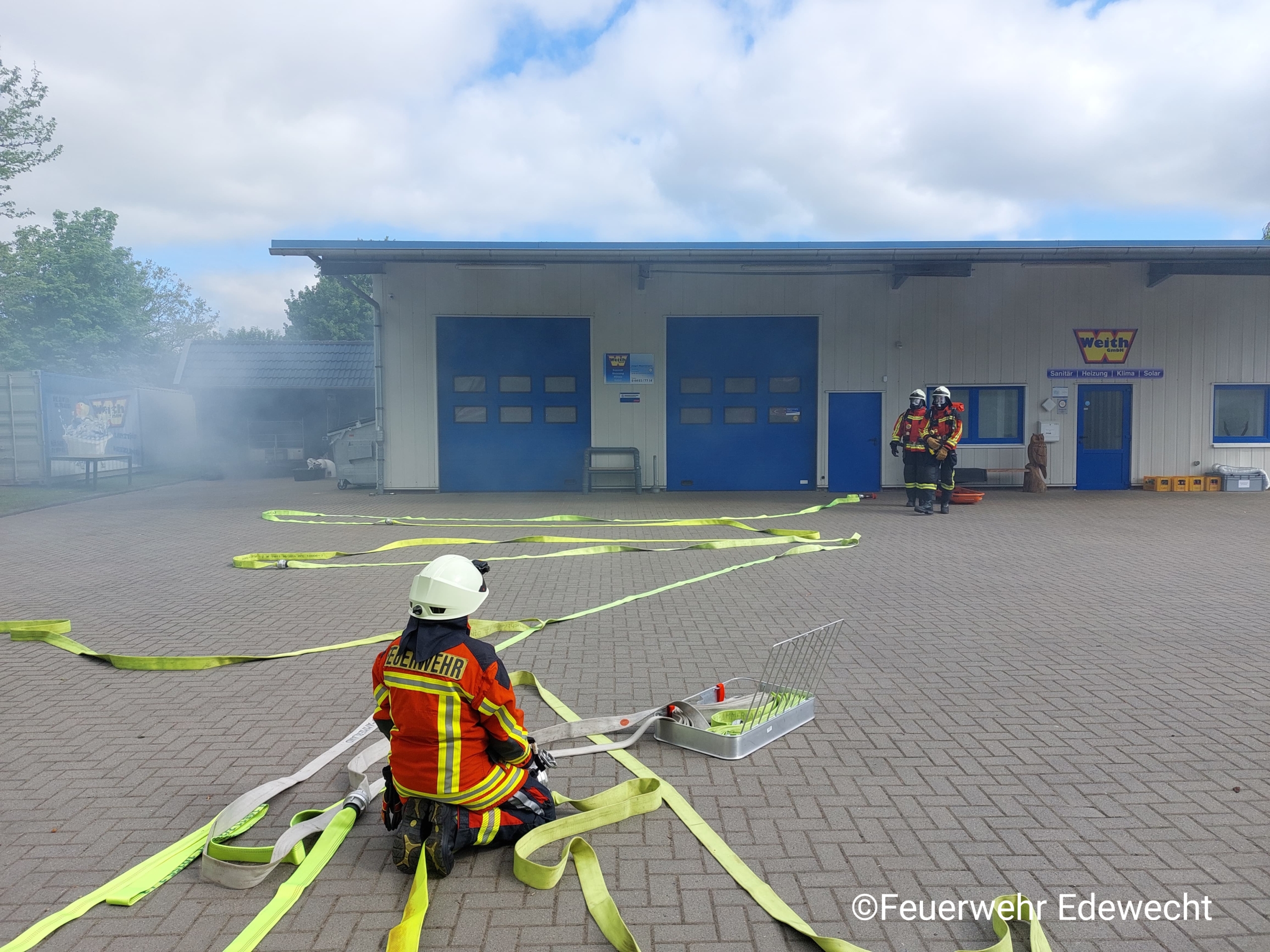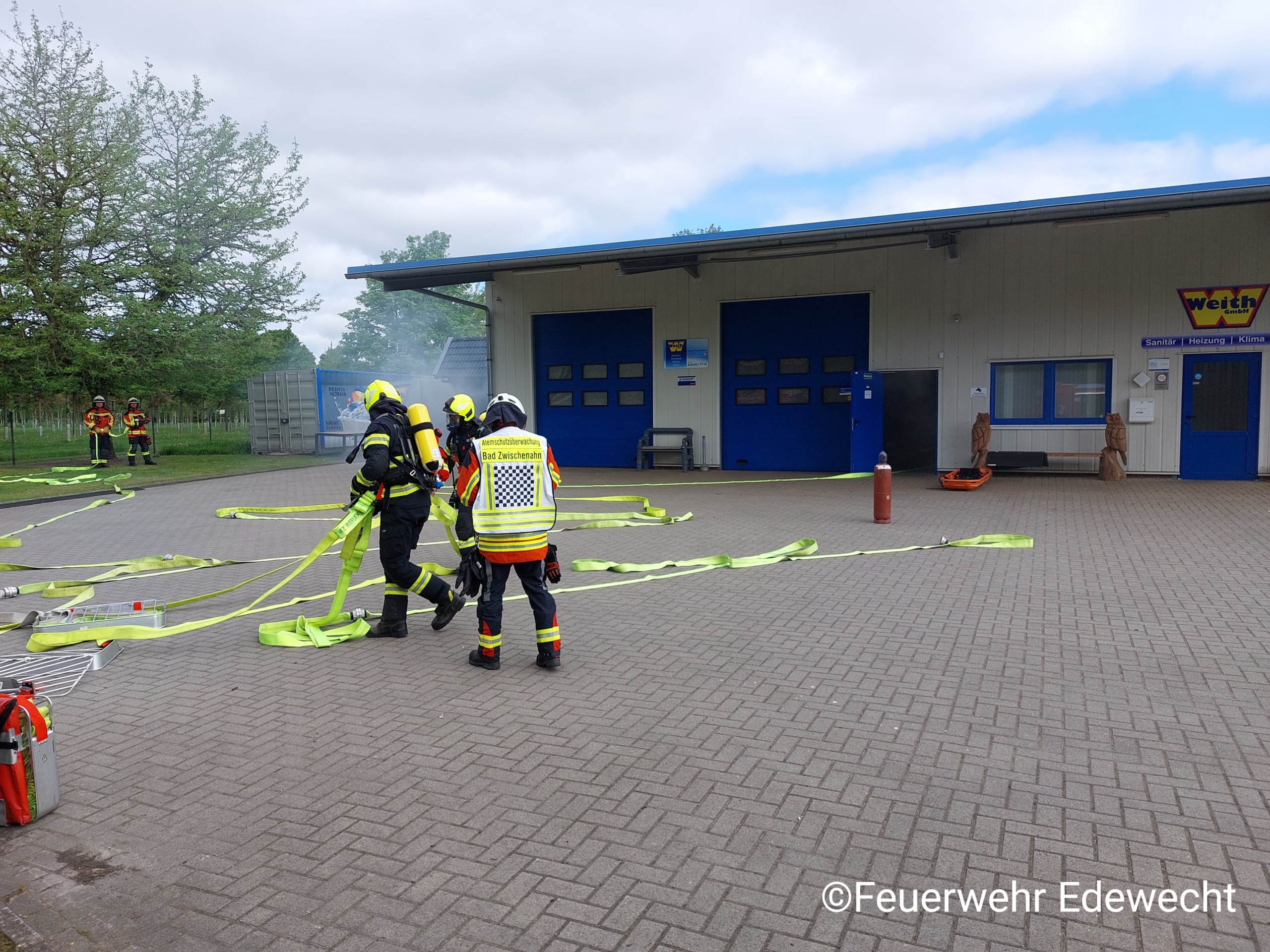 Bedanken möchten wir uns an dieser Stelle ganz besonders bei dem Inhaber Jürgen der Firma Weith GmbH in Rostrup, der diese Übung überhaupt erst möglich gemacht hat, indem wir die Halle und das Gelände nutzen durften. Natürlich bedanken wir uns auch für die Verpflegung nach der Übung.